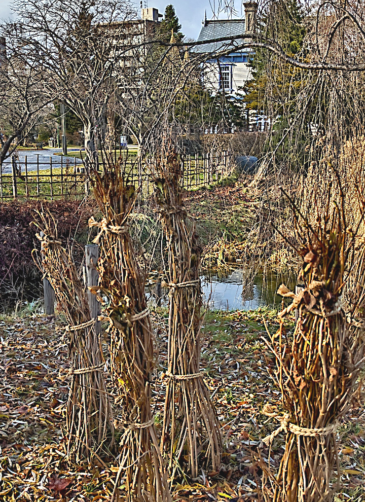 途中で花とお供物を買って車に乗り込んだ時は小雨で、だんだんと雲行きが怪しくなって来ました。天気予報では雨マークなしなのに?わずかに青空が見えていたので、お参りを済ませてから、予定通り「中島公園」へ向かいました。さすがにこの時期は、すっかりあの紅葉で賑わっていた公園も冬囲いで、菖蒲池の周りに立ち入り禁止のロープが張られていました。風も温かくて、これから冬の生活が始まるのかと勘違いしそうですが、明日からはいよいよ身震いしそうな日が続きそうです。