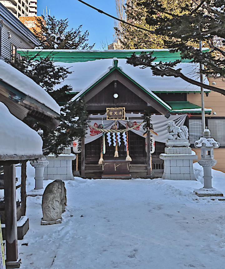 昨日は中島公園の南東にある「彌彦神社」でしたが、今日は中島公園の北西にある「札幌水天宮」です。南東から北西までほぼ公園を歩いて一周してきました。お天気は良かったのですが、気温は-10度近くで寒いこと!写真を撮っていると手が凍えます。と言うことで、新年の初詣も済ませて新しい気持ちでスタートです。家の前の雪棚もスッキリ無くなって、雪置き場も充分確保できたので、そこそこの積雪は何とかなりそうです。今日は昼過ぎからチラホラ雪が舞って来ましたが、明日にかけて少し積もりそうですが、丁度良いタイミングの様でね。