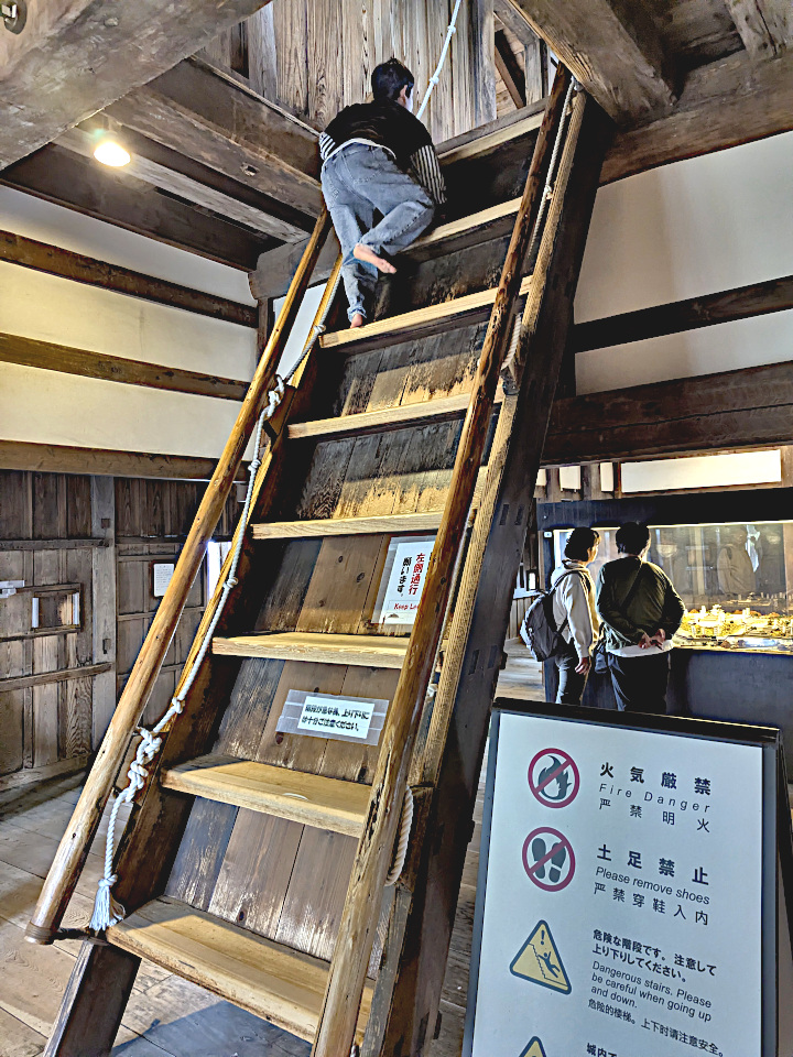 明日は名張から、滋賀県湖東へ向かって途中から北陸自動車道を走って、福井丸岡城を目指します。聞く所によると、階段の角度が1階~2階が約65度、2階~3階が67度だそうですが、果たして私達は登れるでしょうか?「備中松山城」と最後の締めのような「福井丸岡城」を登りきって、8日12時に新潟港から小樽港に向かいます!