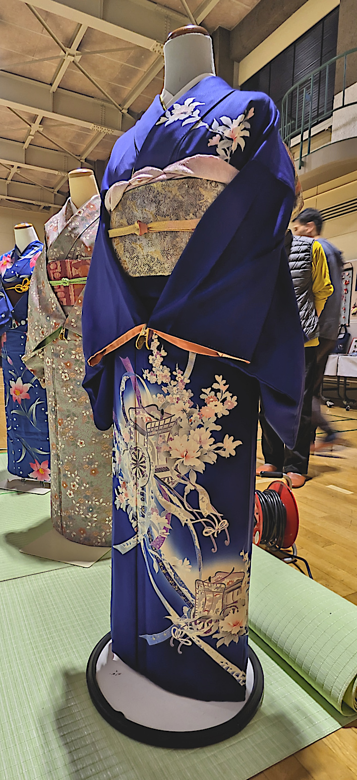 今日は毎年楽しみにしている、啓子先生の「着付け教室文化祭」に行って来ました。自分で着物を着れるようになりたいと思っていても、なかなかその一歩が出ないで終わる事に方が多い見たいです。今日はシュガーさんと二人揃って、浴衣を着せて頂きました。思っても見なかった事で、これこそ「サプライズ」です!シュガーさんは結構似合っていて、初めての浴衣姿似合っているではありませんか。来年の夏は浴衣デートどうでしょうか?温かい豚汁とおにぎり、今日のような雨降りには、とても体と心が温まりました。ご馳走さまで〜す!