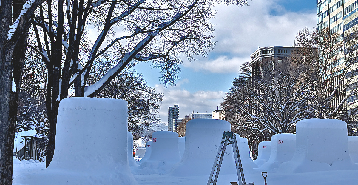 今週25日から災害級の「ドカ雪」で、交通網が止まってしまい、除雪作業が回らなくなっています。二車線の道路でも、バスが交差出来ないほど道幅が狭くなっています。路面脇の大盛りの雪の残骸を見ても、今回のドカ雪が凄かった事がわかります。午後からの用事の前に、2月4日から開催の「さっぽろ雪まつり」の写真を撮って来ました。まだ準備途中なので、どんな雪像なのかサッパリ分かりませんでした。いつの頃からなのでしょうか、雪像制作中は立入禁止のロープや塀で囲まれていました。