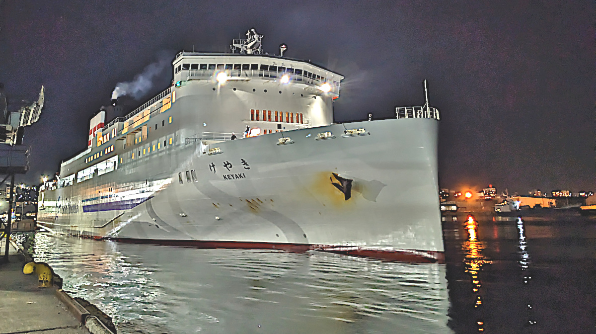 ランチの後に、朝は船首の写真そして午後から、朝荒天で閉まっていた船尾のデッキに出て写真を撮ろうかと重いドアを開けたら、すごい強風で飛ばされそうになりました。風と戦いながら写真を撮って、温かい船内に戻って来ました。舞鶴港到着は21時15分、今夜の宿泊するアパホテルまで20分弱かかるので、どうにか22時前には到着出来そうです。明日は高速道路を駆け巡りながら四国に上陸します。スマホナビ頼りにしています!