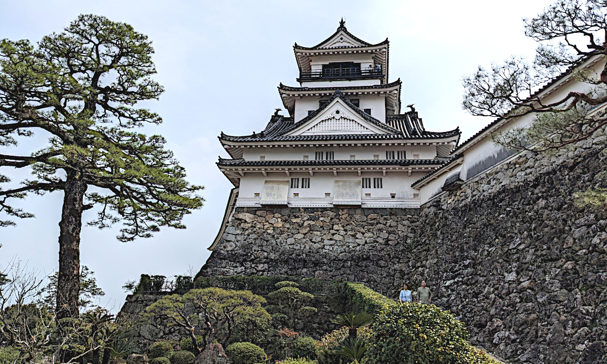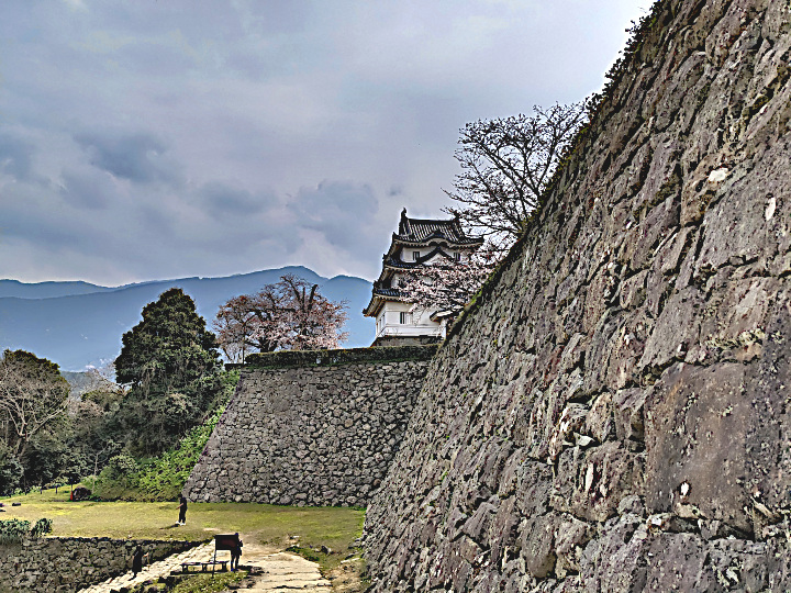 当初考えていたより、実際に走ってみると四国も横幅はとても広いのです。縦幅は狭いように感じますが、険しい山道の連続でとても運転は疲れます。それと前にも書きましたが、道幅がとても狭いので実際にかかる時間は大幅に増えてしまいます。予定していた観光予定もその都度修正しています。さすがに若い時とは違って、体の疲れ方も違うので無理をしない様にしています。今日は現存天守12城の「丸亀城」でした。桜が満開で露店も出ていましたが、小さめの3階建ての天守閣ですが、「犬山城」よりは大きいかも。天守閣までの道も結構急な坂道でしたが、昔のまま残されているようで好感が持てます。
