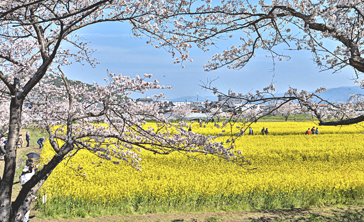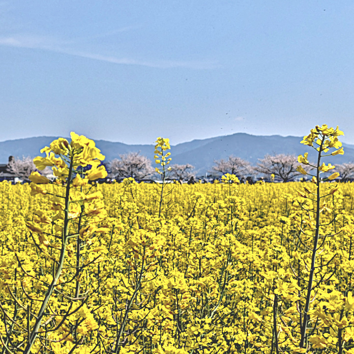 本当は休息日にと考えていましたが、明日の天気が雨予報なのと、テレビで「藤原宮跡の菜の花畑と桜が今が見頃!」というニユースを見たので、藤原宮跡に咲いている菜の花畑を見に行ってきました。普段はこんなに人が来るような場所ではないのでしょうが、臨時駐車場が設けられたりして、今日は凄い人出でした。いい写真が撮れたので今日のブログで見て下ね。ここまで来たのですから、明日香村「甘樫丘」頂上まで登って来ました。
