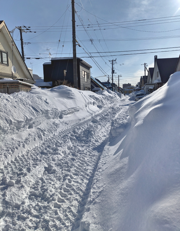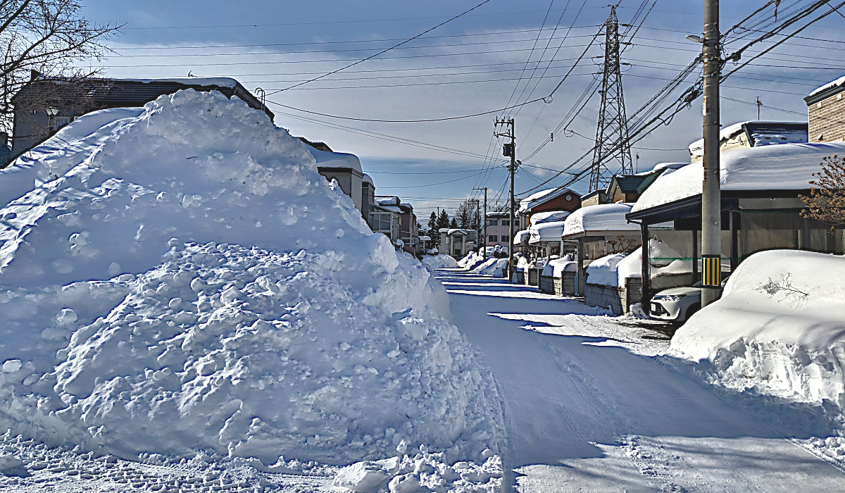 札幌市は今年の「パートナーシップ排雪制度」を取りやめて、交通量の多い生活道路を優先して、札幌市が全額負担して緊急除雪を行うそうです。交通量の多い生活道路の範囲ってどの辺をさすのでしょうか?昨夜入った除雪車の置いていった残骸を雪棚に載せてから、我が家の周りの町内をちょっと歩いて見ました。車が1台分しか通れない道幅になっていて、道路も曲がりくねり積み上げられた雪山で、小さな交差点では左右の見通しが効かなくなっています。急な飛び出しも冬場だけではありませんが、特に冬場は視界が効かないのでいつも危険が一杯!