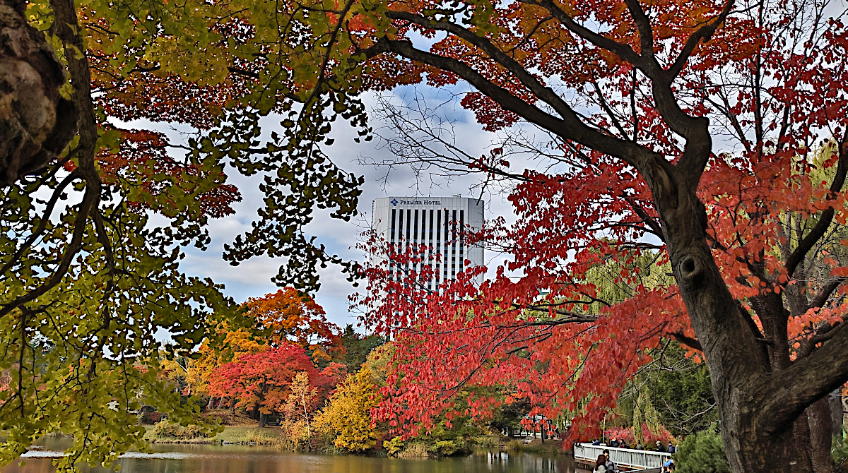 2011年に退職して、私達の生活スタイルが一変して、春から晩秋まで、自転車であちこちの公園へ行ったりしていました。お気に入りの公園の一つ「中島公園」は、桜の頃よりは、見応えのあるのは断然紅葉の時季だと思います。最近は観光スポットになってしまって、海外からの観光客が多くなって来ているようです。まぁ〜私達にしてみれば、静かにゆっくりと歩きたいのですが。今年の紅葉はどんな塩梅かなと思いながら、菖蒲池の周りをぐるっと歩き、日本庭園~札幌護国神社の紅葉へ。