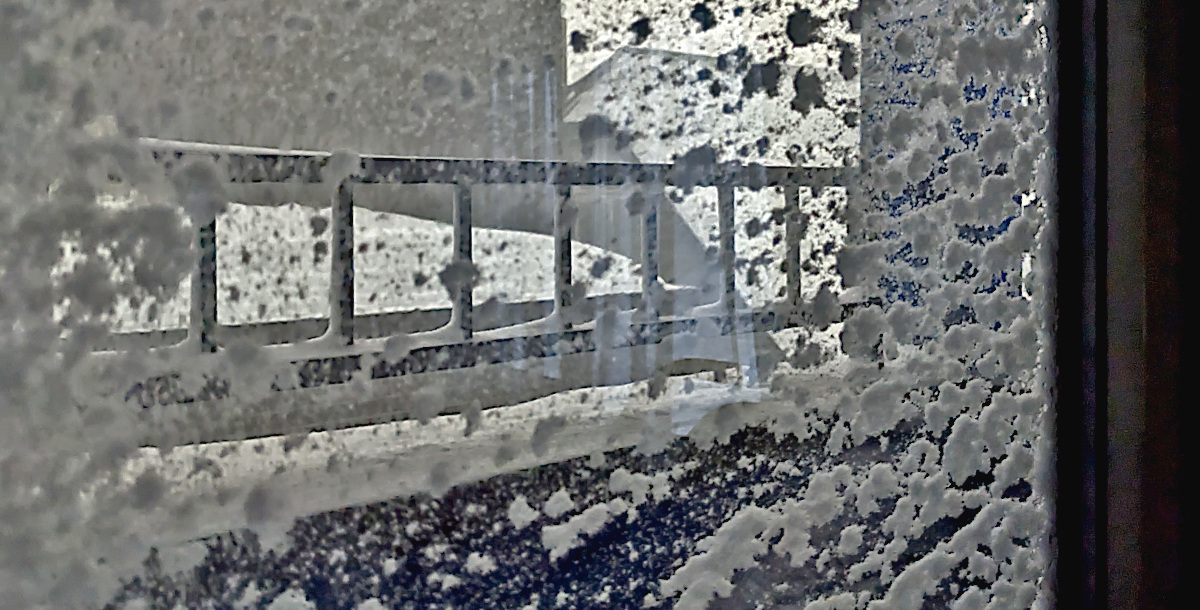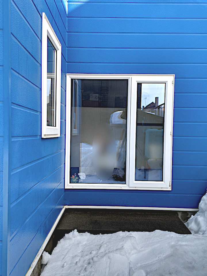 深夜から台風のような強風だった見みたいですが、私は全く知らずに爆睡中でした。今始まった事ではありませんが、雷が鳴ろうと強風が吹こうとめざめず、さすがに地震だけには敏感のようです。今日は朝から「雪かき」は覚悟していましたが、気温が高めなので家の窓や壁には、雪がアメーバのような模様になっていました。気温が低ければ、神秘的な雪の結晶なのでしょうが。雪の降り方が弱くなった所で1回目の「雪かき」スタート。
