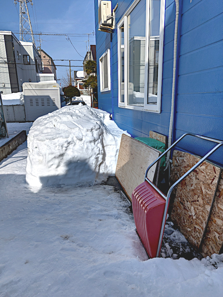 今日15日は、北から南まで春のような暖かさになったそうです。札幌も最高気温が5.8℃まで上がって、今雨ですが着実の春に向かっている気がしています。排雪業者さんもあと2回来てくれるので、今日は朝から玄関前に裏から雪だしを始めました。3週連続のどか雪で、積み上げられた雪が圧縮されて重くて、始める前から気持ちが負けそうでした。2月末までは裏の方から運んで、3月からは自然に溶けるのを待って見ようかと言いながら、やっぱりツルハシを持って氷割りをしていそうです。